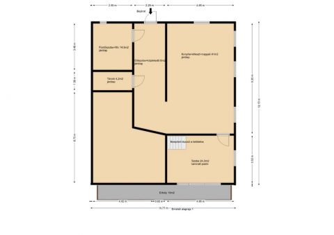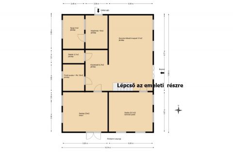 Az ingatlant hatalmas terek jellemzik a felső szint teljesen különálló (külső lépcsőn megközelíthető), de igény szerint akár belülről is össze nyitható.