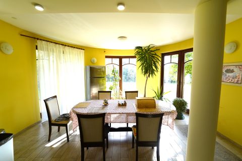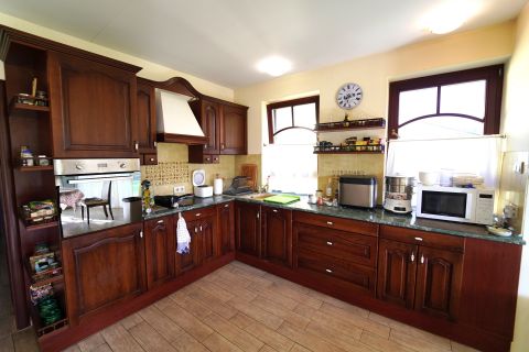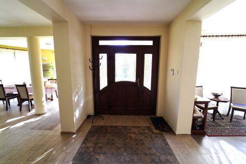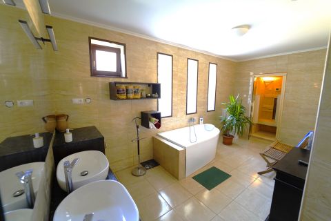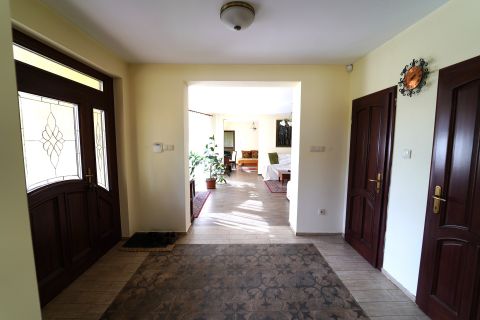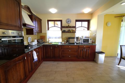 Elrendezés: 3 hálószoba + dolgozó + hatalmas nappali amely a tágas, világos terekkel tökéletes a családi összejövetelekhez vagy pihenéshez. 2 fürdőszoba (az egyik szaunával) és 3 WC: a kényelem minden szinten adott. Hatalmas, jól felszerelt gyönyörű konyha és étkező: ideális hely a családi reggelikhez, baráti ebédekhez és a közös vacsorákhoz. Borozó helyiség: különleges hangulatú tér, ahol barátaival vagy családjával eltölthet egy kellemes estét. Külső terület: A hatalmas, 1077 nm-es parkosított telek igazi oázis, ahol egy kis tó teszi teljessé a természetközeli hangulatot. Ideális hely a pihenéshez, kikapcsolódáshoz, vagy akár kertészkedéshez is.