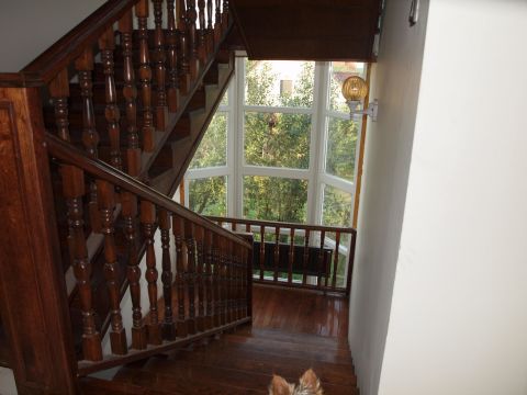 A földszinten 2 hálószoba - az egyikben egy működő márvány kandallóval -, fürdőszoba, külön WC, a konyha, kamra és egy nagy nappali-étkező található, ahonnan ki tudunk jutni a medencés kertre néző L-alakú teraszra.