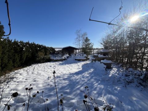• Élhető kert: Fedett terasz, kemence, szalonnasütő és kerti tároló. Elég hely medencének vagy játszótérnek.
