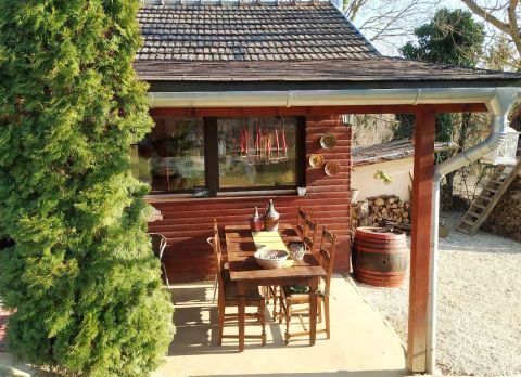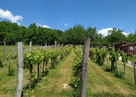 6 sor termő szőlő biztosítja a saját bor készítését, melyet a pincében tárolhat.
