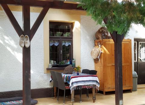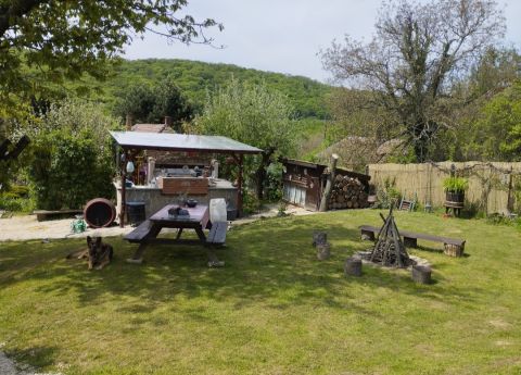 A területen található egy főház, ezenkívül kialakításra került, két teljesen berendezett faház, egy eredeti jurta és egy lakókocsi, és egy közösségi ház ahol kisebb rendezvények családi események lebonyolíthatóak. A kertben helyt kapott egy nyitott konyha, és egy szalonnasütő is. Ezenkívül különböző melléképületek biztosítják a tárolási lehetőséget.