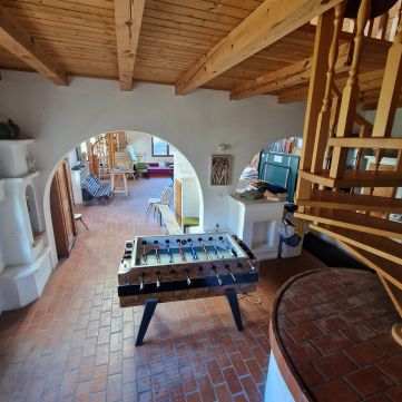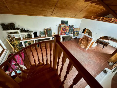 Romantikus művészház tágas lakótérrel és műteremmel Lenti fürdővárosában. A ház egy csendes mellékutcában található, körülbelül 8 perc sétára a híres Lenti termálfürdőtől, egy gyönyörű rózsa- és gyümölcsöskertben. Két toronnyal és egy szőlővel borított pergolával a ház gyönyörű kilátást és mediterrán hangulatot kínál.