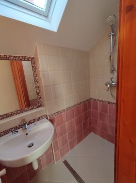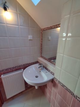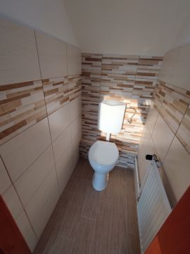 A tetőtérben 2 külön nyíló szoba, gardrób szoba és egy fürdőszoba + WC helyiség került kialakításra.