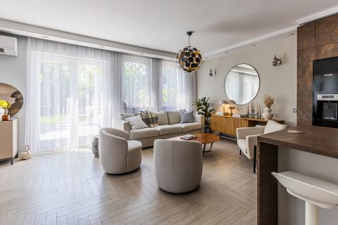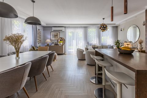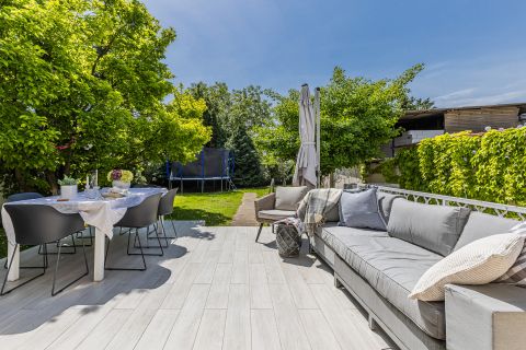 Az ingatlan egyik KÜLÖNLEGESSÉGE a csodálatos NAPPALI az ELEGÁNS SYKORA KONYHÁVAL, amit a hatalmas üvegtáblás teraszajtókkal egybe lehet nyitni a GYÖNYÖRŰ TERASSZAL és a GONDOZOTT KERTTEL.