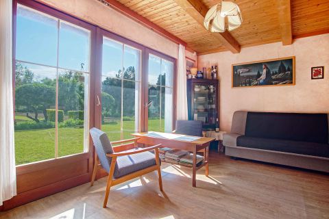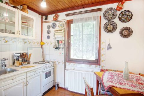 FAHÁZ 1992-ben épült, szintén DNY-i tájolású. 3 szobás, 53 m²-es, + 5 m²-es terasz. 10 cm-es szigeteléssel ellátott. H-tarifa bevezetve, így elektromosan is fűthető a 3 db klímával kedvező áron.