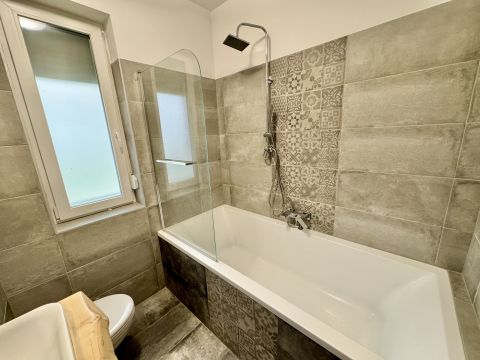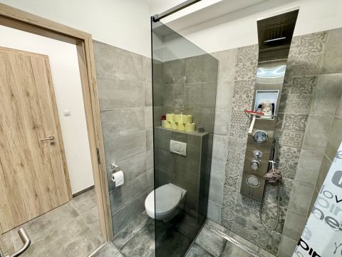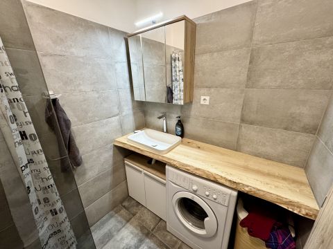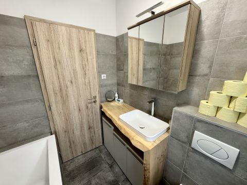 Mindkettő fürdőszoba tömörfa fürdőszobai pultokkal lettek ellátva, teljesen egyedi designnal, az egyik fürdőben 2 méteres fürdőkád a másikban tágas zuhanyzó található.