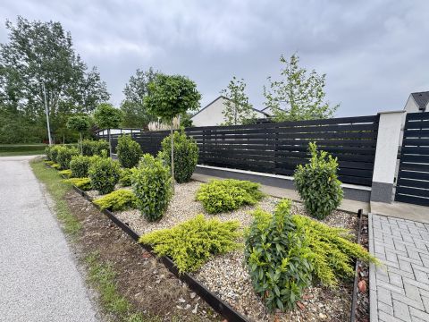 Az első és hátsó kert el vannak választva, így a hátsó kertbe egy külön kapun át is be lehet jutni.