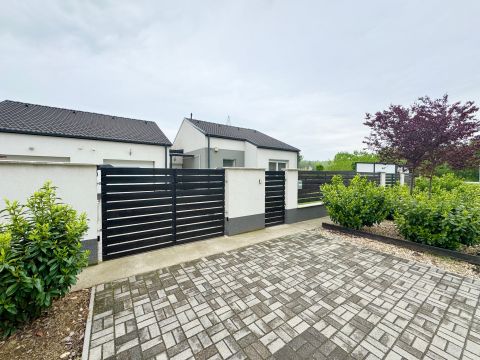 Tégla építésű, fa födémes, cserép tetővel, 10 cm szigeteléssel. Elektromos kapu és garázskapu könnyíti meg a hétköznapi bejutást.