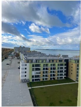 Ez a 8. emeleti, nappali + 2 hálószobás, erkélyes lakás egy 2020-ban átadott, 11 szintes társasházban található, amely a vízpart mellett helyezkedik el.
