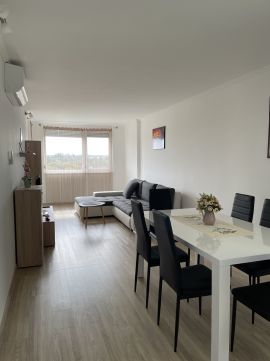 A lakás teljesen felszerelt, bútorozott, gépesített, redőnnyel, szúnyoghálóval ellátott.
