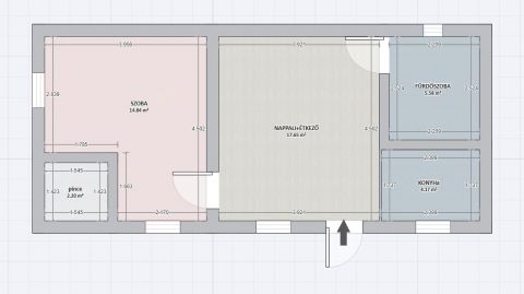 Az épület hasznos alapterülete 42 m², egy konyha, nappali, egy szoba, fürdőszoba+wc helyiségekből áll.