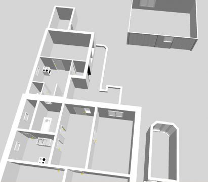 -A melléképületben található a saját teraszáról külön nyíló, harmadik, 29 nm-es garzonlakás: előszoba, konyha-étkező, szoba. A wc különálló, azonban a zuhanyzós fürdőszoba lefalazása itt jelenleg hiányzik, tehát némi belső átalakítás szükséges a teljes értékű lakás kialakításához.