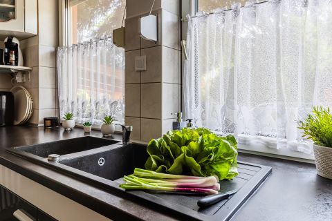 A ház KELET-NYUGATI TÁJOLÁSÚ, így a délelőtti napfény a nappalit éri, délután a konyha ragyog.