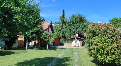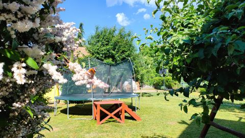 Otthont ad a kert továbbá bőven termő gyümölcsfáknak, szeretettel ápolt virágoknak, fészekhintának, trambulinnak, kosárlabdapalánknak, homokozónak.