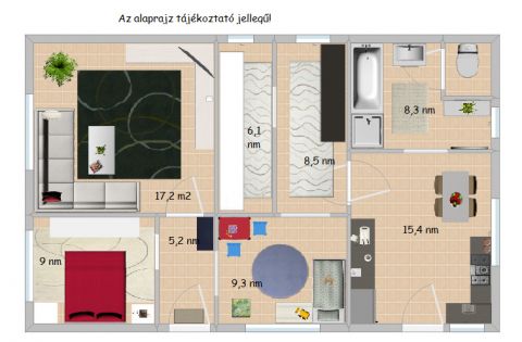szoba / nappali: 17,2 m²