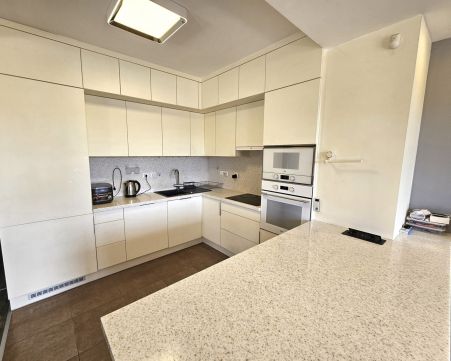 Az ingatlanban prémium minőségű burkolatok, beépített bútorok és gépesített konyha került beépítésre.