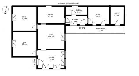 A ház nem alkalmas Falusi CSOKra és ingatlan fedezetű hitelre, mert a térképszelvényen eltérés van a fizikai állapothoz képest.