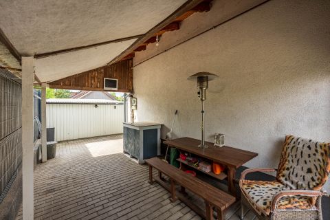 Az udvar elég helyt biztosít gyermekek játszóteréhez, kertészkedéshez, grillező építéséhez.
