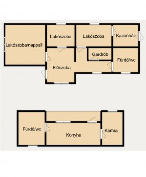 - 1960-as években épült, 2 épület található egy telken - fő épület, vályog és tégla építés, 66 nm, 3 szoba, gardrob, közlekedő, fürdő és wc valamint kazánház - nyári konyha, tégla épület, 22 nm, konyha, kamra, fürdőszoba - vegyestüzelésű kazán - 1597 négyzetméter telek,amiből 400 négyzetméter a tanya megnevezésű a fennmaradó rész szántó - melléképületek, tárolók - 2 inverteres klíma