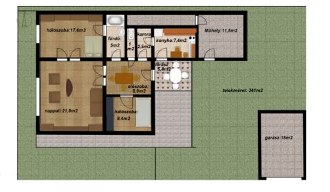 A telken egy 15 m²-es, téglából épült garázs is helyet kapott.