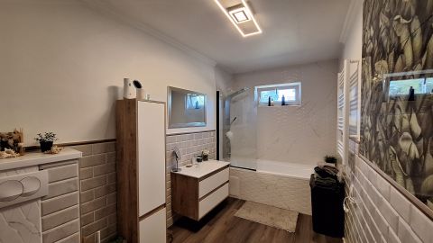A ház korszerű építési megoldásokkal készült, így alacsony fenntartási költséggel üzemeltethető, és hosszú távon biztosít kényelmes, otthonos életteret.