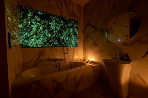 - Charcoal Flow TV – fal 348 db világító rózsakvarc betéttel