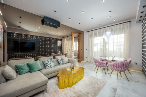 -elegáns nappali-étkező, mely a lakás központi tere,