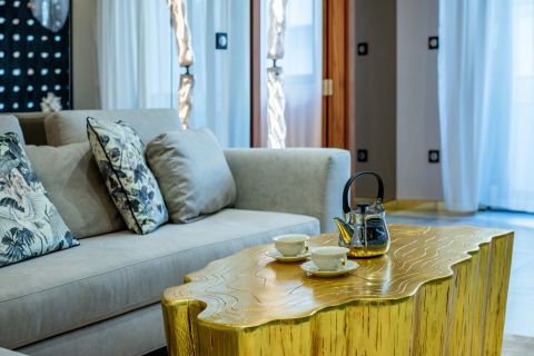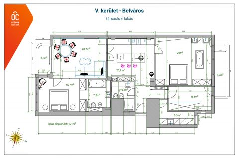 A 121 m²-es, világos, keleti tájolású lakás kifinomult eleganciát és modern kényelmet ötvöz.