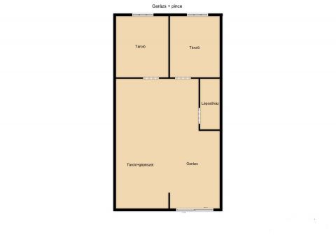- Szuterén: garázs, ipari árammal ellátott gépészet, több nagy tárolóhelyiség