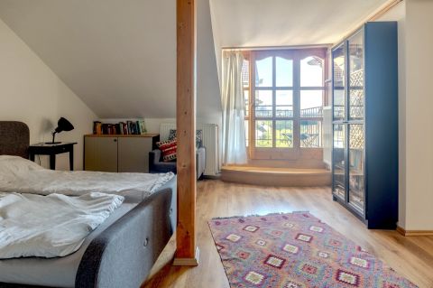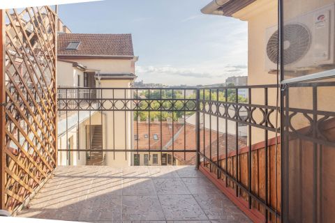 - A felső szinten a szobából nyílik a terasz, ahonnan a Budai vár felé néző panorámában gyönyörködhetünk.