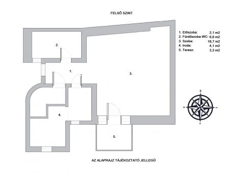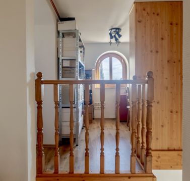 - A felső szinten, a lépcső fölött található egy jelenleg irodának használt, két részre osztott, ablakos helyiség.
