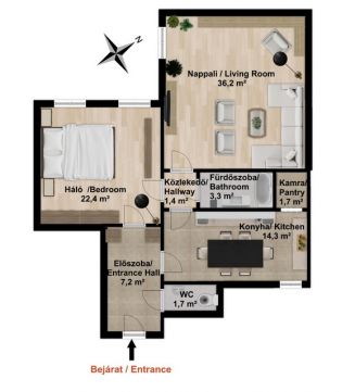 2 nagy szoba, különnyíló helyiségek – könnyedén 3 szobássá alakítható