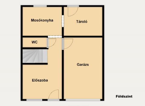Földszint (üzleti rész): mosókonyha, garázs, tároló, WC, előszoba – külön bejárattal, irodának/üzleti célra kiváló