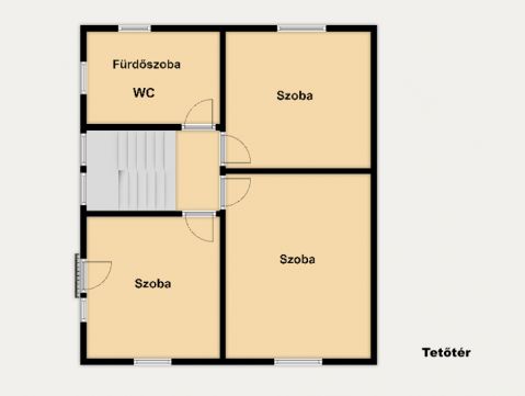 Második emelet: 3 hálószoba, fürdőszoba + WC