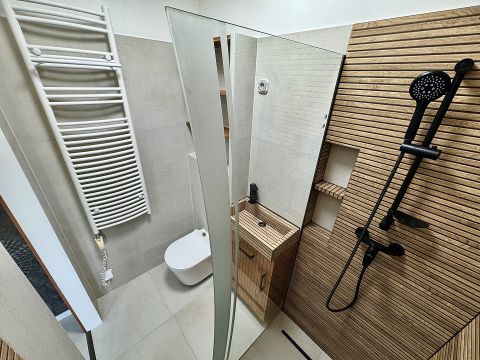 Belülről 2025-ben teljes körű esztétikai felújításon esett át, melynek során a teljes aljzatbetont, burkolatokat, vakolatokat, szanitereket, csaptelepeket cserélték. A villany vezetékek rézből vannak, a vízvezetékek 5 rétegű műanyag csövek. A fűtésről egy fa/szén tüzelésű kandalló, valamint egy klíma gondoskodik. A meleg víz ellátást villanybojler biztosítja.