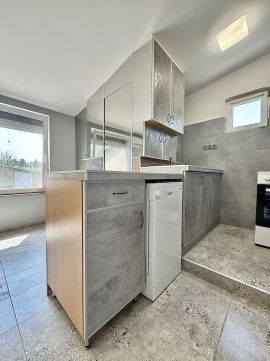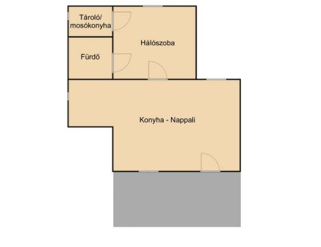 - Konyha-nappali + hálószoba + fürdő + mosókonyha elrendezésű