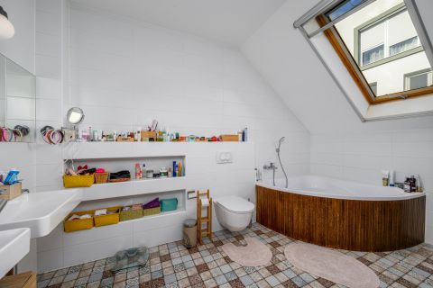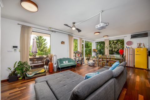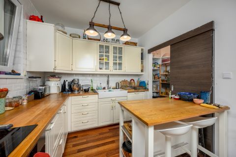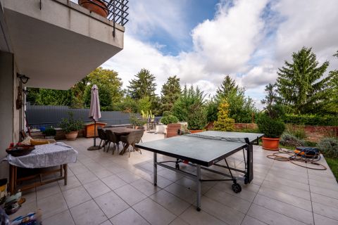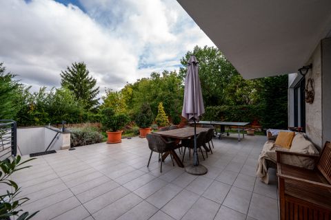 Megvételre kínálunk Testvérhegy egyik legkedveltebb részén egy panorámás, földszinti, 146 m²-es, 5 szobás, önálló bejáratú, nagyon világos duplex lakást, saját kerttel és hatalmas terasszal.