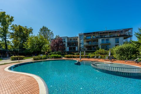 A ház: A társasház rendezett, folyamatosan karbantartott. A lakók számára közös használatú, gondozott medence áll rendelkezésre, ami különleges kényelmet nyújt a nyári hónapokban. Közös költség: 29 000 Ft.