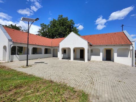Korábban közösségi célokat szolgáló impozáns épület. Két óriási termével, melyből még plusz 3 szoba is kialakítható! Az épület utcafronti részén külön elválasztott iroda-üzlet helyiségével, vizesblokkjaival, konyhájával szinte kínálja a lehetőséget a fantázia szárnyalásához.