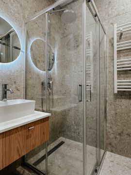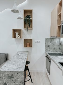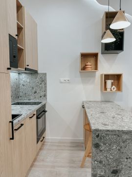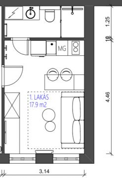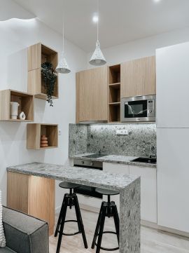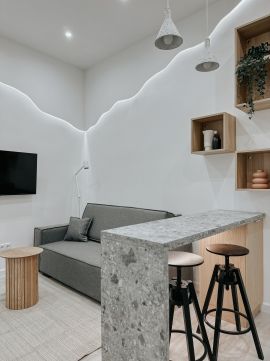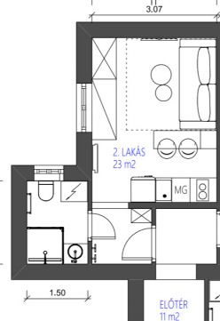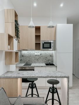 • Három különálló lakrész – a teljeskörű felújításnak és a belsőépítész által megálmodott, minőségi belső kialakításnak köszönhetően 17,9 m²-es, 23 m²-es és 25,9 m²-es, méretéhez képest praktikus elrendezésű lakások jöttek létre, így egy ingatlanon belül három önálló lakást adhat ki a tulajdonos.