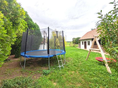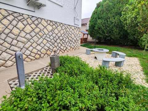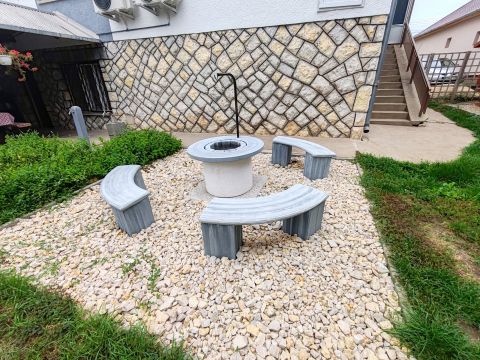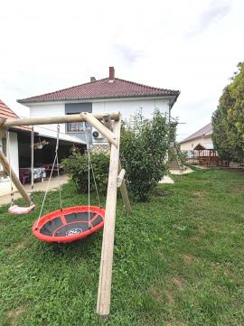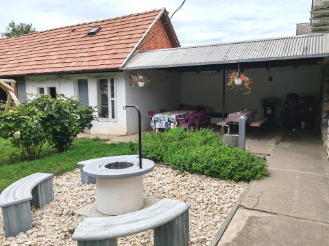 A ház mögött fedett terasz, új bográcsozó és sütögető, valamint fából készült filagória (szaletli) szolgálja a kellemes időtöltést.