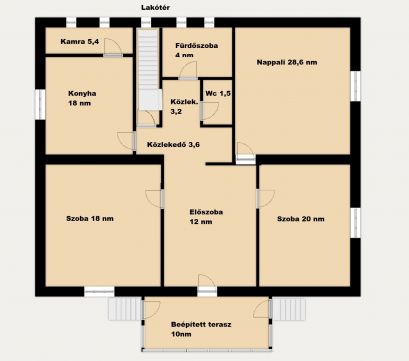A lakótér a magasföldszinten helyezkedik el, ahol 3 tágas szoba, fürdőszoba, külön WC, világos konyha kamrával és előszoba került kialakításra.illetve a szélfogó.