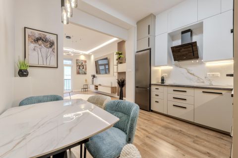 A lakás teljes felújítása során a funkcionalitás és a modern minimalista design volt a fő szempont.