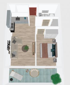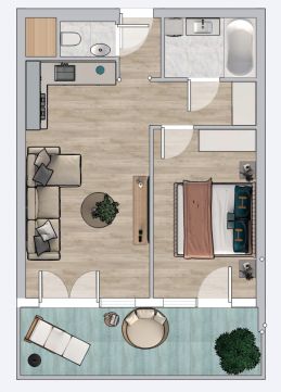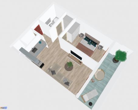 - Nettó alapterület: 44,67 m² + 11,63 m² erkély - Amerikai konyhás nappali, gépesített, beépített konyhabútorral - 10,74 m²-es hálószoba, külön nyílással - 3,19 m²-es gardrób - A nappaliból és a hálóból egyaránt nyíló, tágas erkély - Külön helyiségben található fürdőszoba és WC