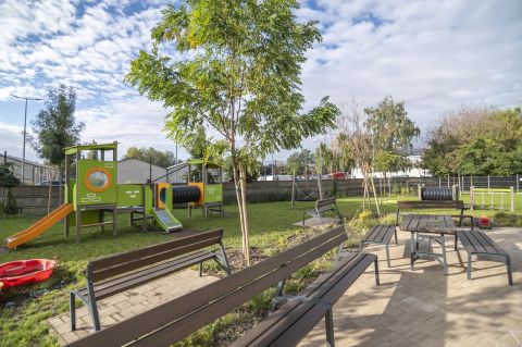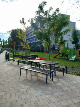 A Társasházat körbevevő, parkosított terület, fantasztikusan átgondolt, megtervezett.
