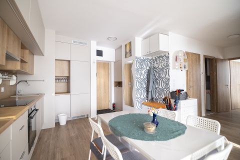 Már a lépcsőház is meglepetést okoz:,hiszen modern,gyönyörű,tágas,2 liftes, nem érzékelhető a lakások száma.