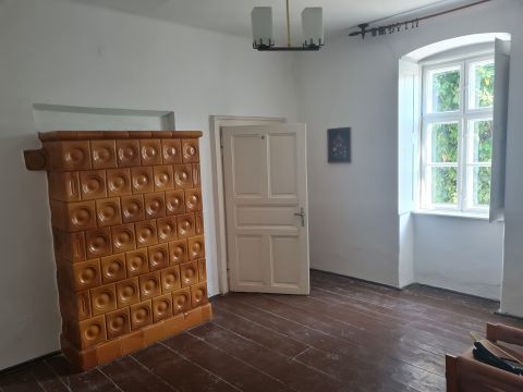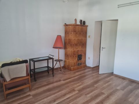 Az épület 80 négyzetméteres hasznos alapterülettel rendelkezik, melyhez tartozik egy 30 négyzetméteres pince, egy 22 négyzetméteres garázs és egy 13 négyzetmétere fatároló is. Belső elosztása: A központi közös helyiségből nyílik a konyha - melyben egy kamra is helyet kapott-, a hálószobák, fürdőszoba, valamint itt található a ház fűtésének ellátásáért felelős cserépkályha is. A meleg vizet bojler szolgáltatja, a gáz a telek határáig bevezetésre került.