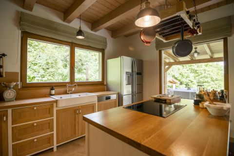 Ez az ingatlan nem csupán egy ház, hanem életérzés: a természet közelsége, a gondosan megválogatott prémium anyagok és a különleges részletek – a hangulatos kályhától a beépített konyhán át a fürdődézsáig – mind hozzájárulnak ahhoz, hogy egy igazán egyedi, értékálló otthont kapjon új tulajdonosa.