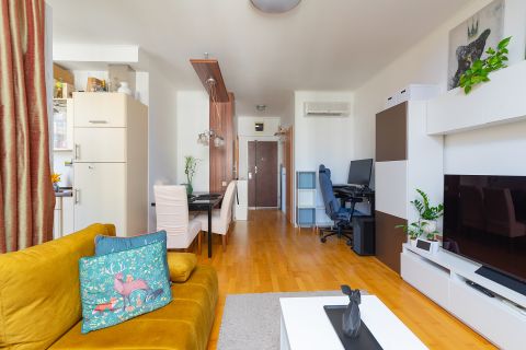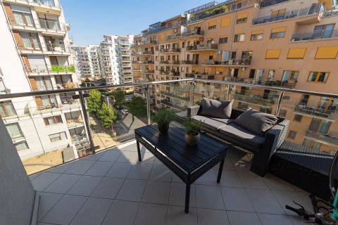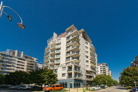 XIII. Marina parton, 2011-ben átadott társasház 5.emeletén, 51 m² alapterületű + 11 m² teraszos, Foka-öbölre és Dunára részpanorámával rendelkező, tágas, kétszobás otthon eladó.